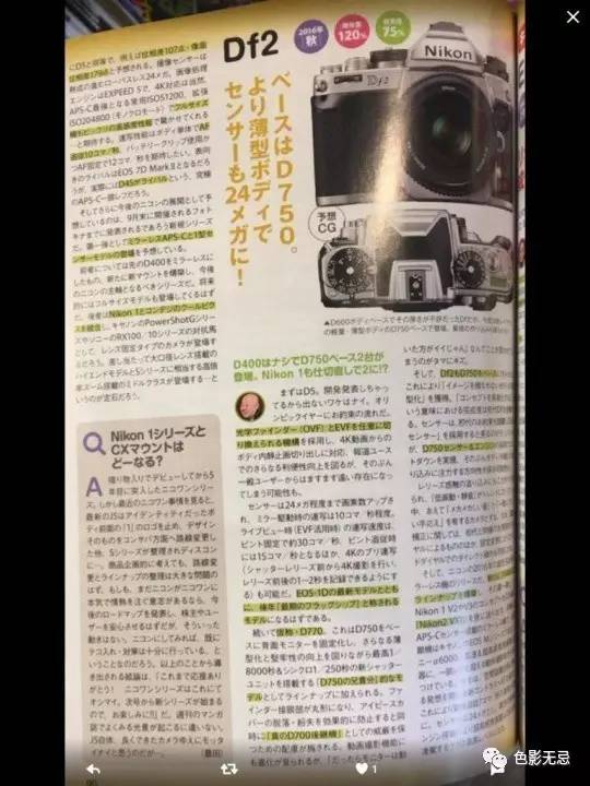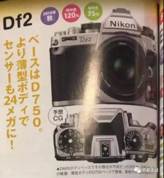 该情报来源于日本CAPA & Impress杂志。这本杂志中出现了尼康Df2相机正面及机顶照,事实上杂志中Df2的外观与一代产品Df外观没什么区别。